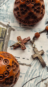 Antique Hand Carved Coquilla Nut Egg Box with Rosary